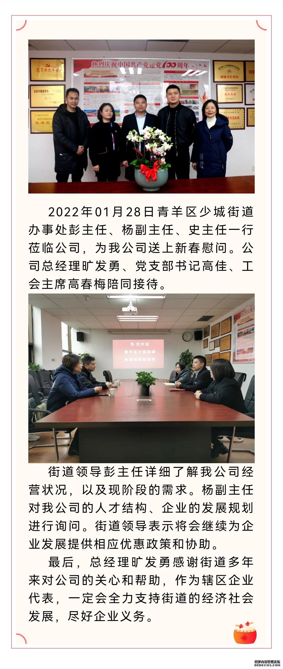 青羊区少城街道办事处领导莅临我司并送上新春慰问