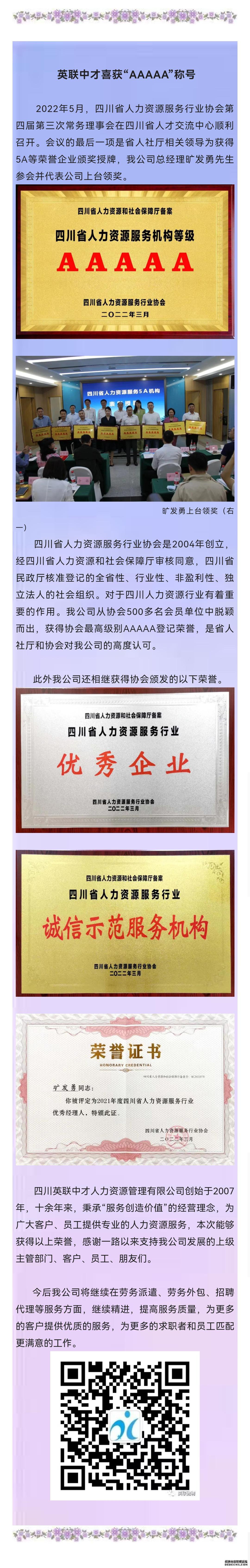 英联中才喜获“AAAAA人力资源服务机构”称号