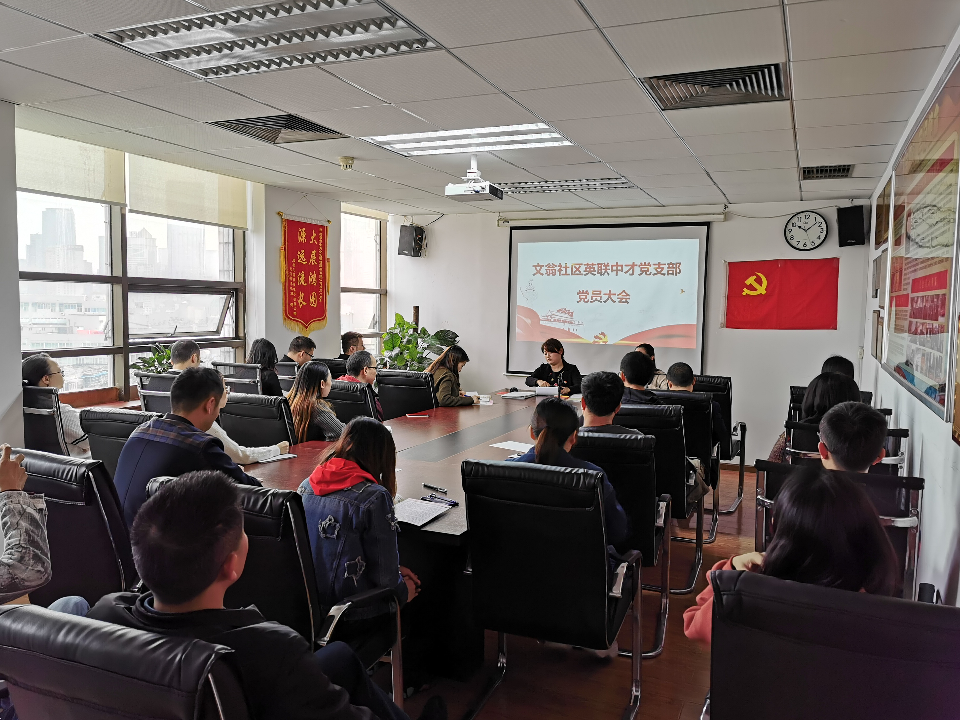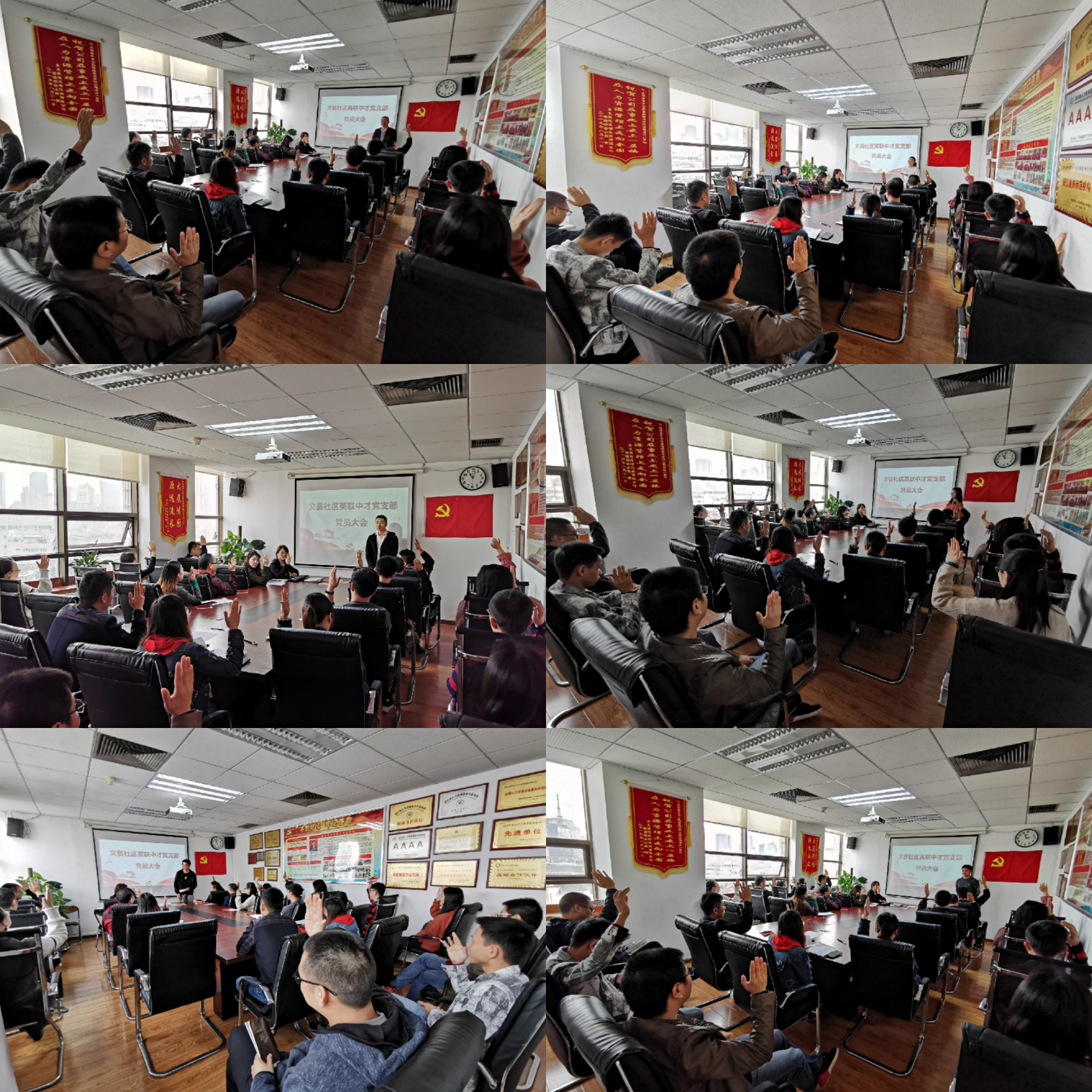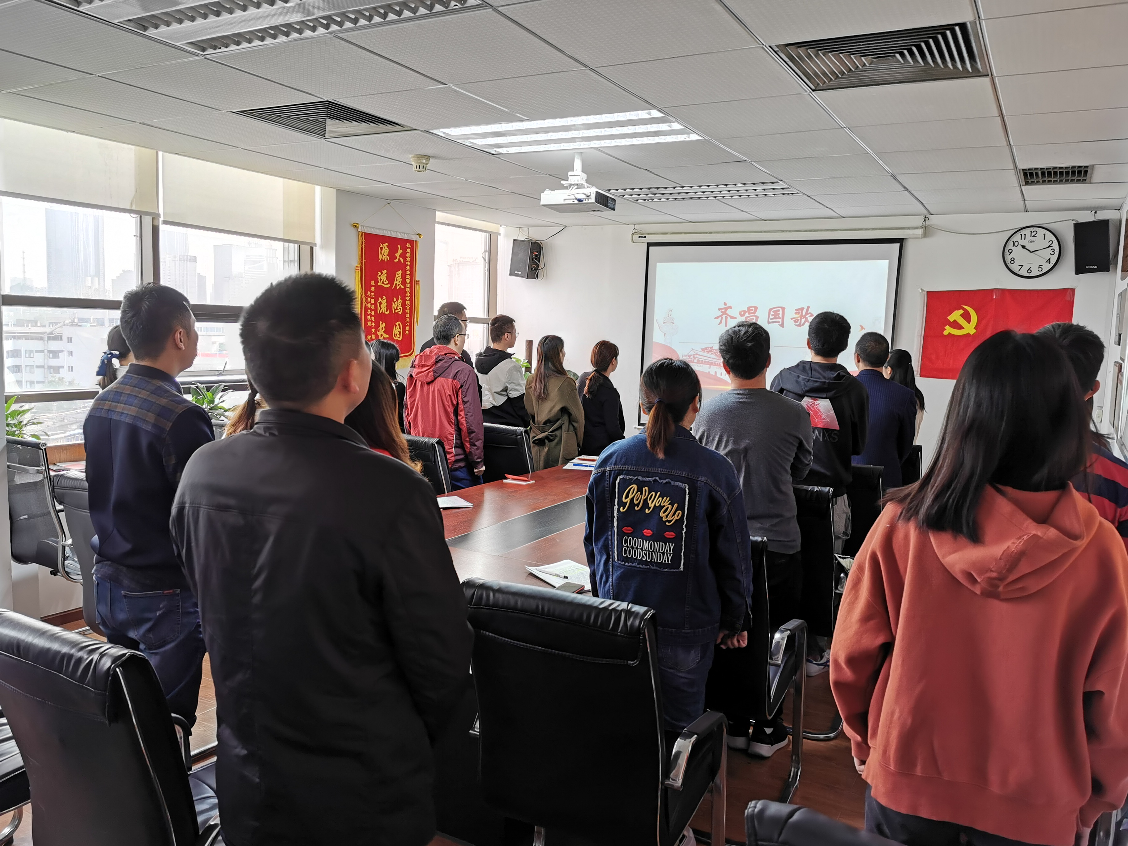全员共唱国歌,党员大会正式开始